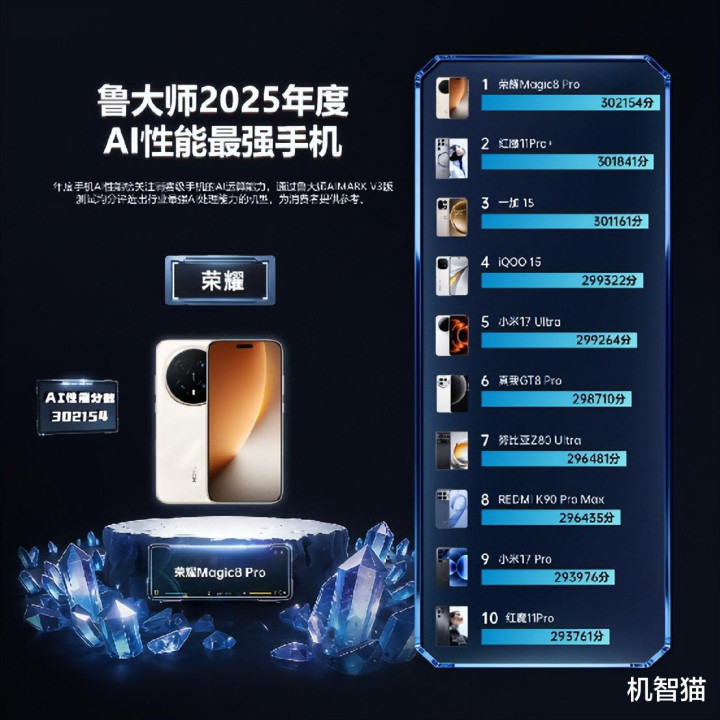 荣耀 Magic8 Pro 斩获“2025年度AI性能最强手机”。依托骁龙8至尊版与荣耀魔法大模型3.0的深度协同,其 AI 性能提升 37%,文本生成速度达 220 tokens/秒,推动 YOYO 智能体实现从“被动工具”到“主动预判”的体验跨越,成为年度 AI 旗舰能力的代表机型。