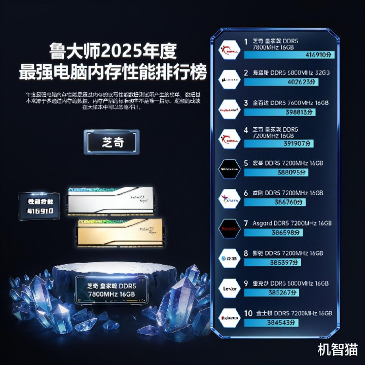 芝奇 皇家戟 DDR5 7800MHz 16GB 斩获“2025年度最强电脑内存性能”。在高频 DDR5 时代,频率是门槛,稳定才是壁垒。皇家戟以严选颗粒与成熟调校实现 7800MHz 高规格稳定运行,并保留更高频率冲刺潜力,兼顾散热与美学设计,代表了高端内存从参数到体验的完整兑现。