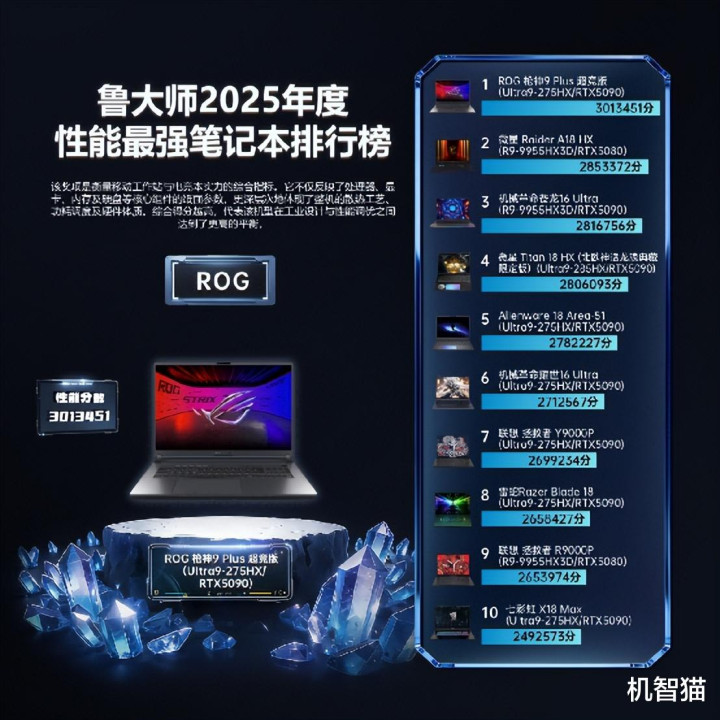 ROG 枪神 9 Plus 超竞版 夺得“2025年度性能最强笔记本”。它不仅仅是把 Ultra 9 与 RTX 5090 放进一台机身,而是把旗舰性能真正跑出来:冰川散热 3.0 与液金覆盖带来更强的持续释放能力,让高性能输出稳定“不断电”,为 2025 旗舰性能本树立了直接参照系。