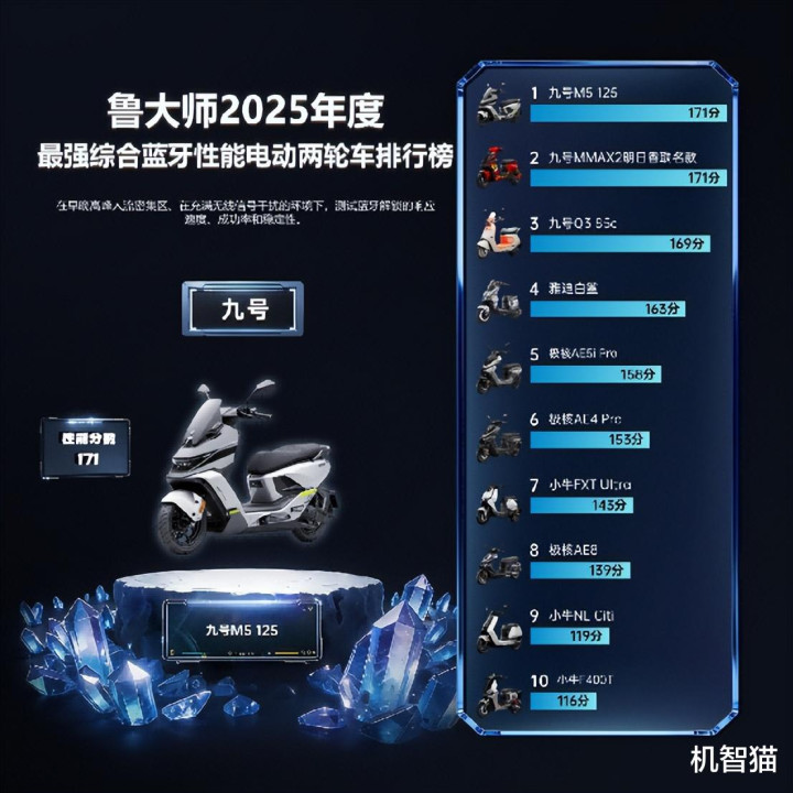 九号 M5 125 荣获“2025年度最强智能电动两轮车”。从多模态解锁到车辆状态可视化,再到全链路互联体验,九号让两轮车从交通工具进化为数字生活的移动节点,最终以 915 分智能总分 领跑榜单,成为年度智能两轮出行的标杆产品。