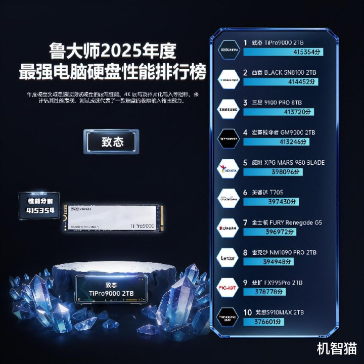 致态 TiPro9000 2TB 荣获“2025年度最强电脑硬盘性能”。搭载晶栈 Xtacking 4.0 架构,它在 PCIe 5.0 赛道跑出 14000MB/s 级别读取表现,以自研闪存与强悍主控构建持续写入与高负载吞吐能力,向行业展示了国产存储在高端性能区间的关键突破。