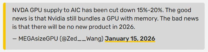 根据知名爆料者MEGAsizeGPU的消息,英伟达已经大幅度削减了供应给AIC显卡制造商的GPU核心与显存套件,幅度达到15%-20%。若此消息属实,此举必将引发新一轮的显卡涨价狂潮。