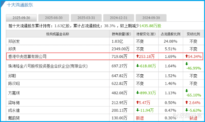 但真正让财官脊背发凉的,是股东名单的变化:香港中央结算有限公司,也就是北向资金的通道,加仓55%。