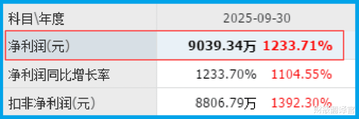 三季度业绩9039.34万,不仅同比暴增1233.71%,还一举超过去年全年。这个数字太扎眼了,扎眼到反常。