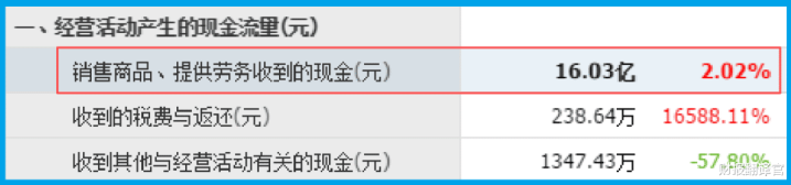 紧接着,他看到了销售商品收到的现金总额:16.03亿,同比增长2.02%。