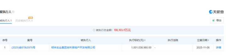 作为天府银行第九大贷款客户的明宇实业集团吉林房地产开发有限公司,贷款余额为7.5亿元,他们在2025年11月6日新增一条被执行信息,执行标的为10.01亿元。