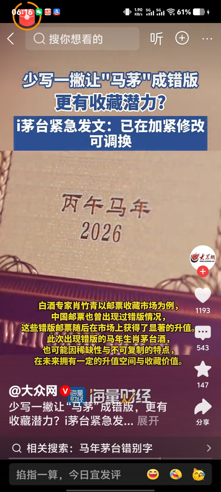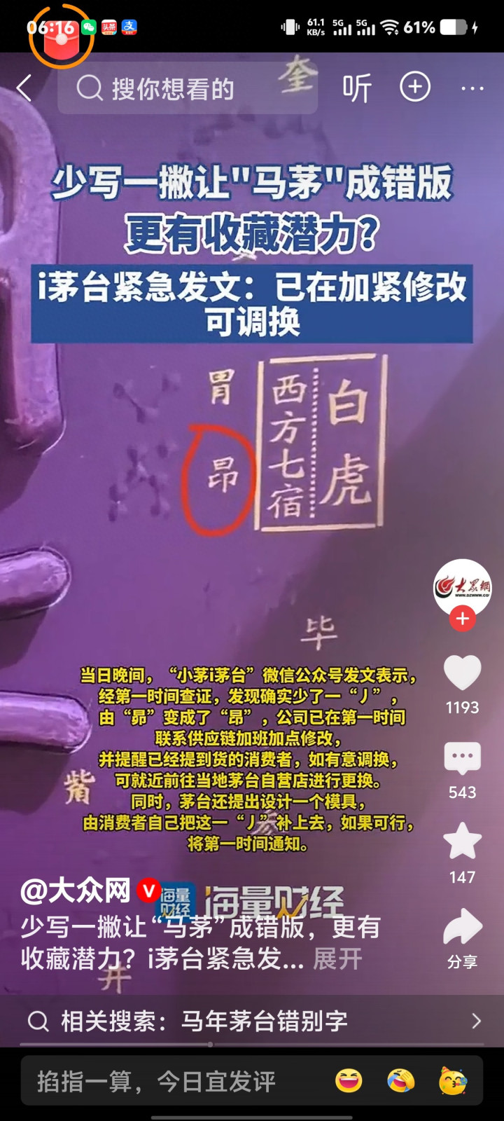 针对最近热议的“马茅”(丙午马年生肖酒)包装印错字事件,茅台官方账号“小茅i茅台”在1月21日确认,确实少写了一撇。如果你已经入手了这款酒,或者正在关注这件事,我为你整理了详细的来龙去脉和官方处理方案: