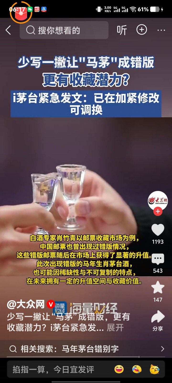 * 升值论:有专家指出,开云app官方最新下载参考邮票等收藏市场,“错版”往往因为稀缺而升值。目前二手平台上,标榜“错版”的马茅报价已经有所上涨(约2200-3000元/瓶,原价1899元)。