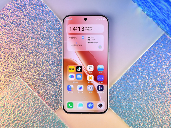 正面是一块6.59英寸直屏,这个屏幕尺寸算中屏,搭配 74.42mm的机身宽度,单手握持感更加轻松了,单手操作也更加方便了,背面采用全新的设计方案,后置 Deco 采用阶梯式缓坡结构,视觉上呈现悬浮「机器之眼」效果。