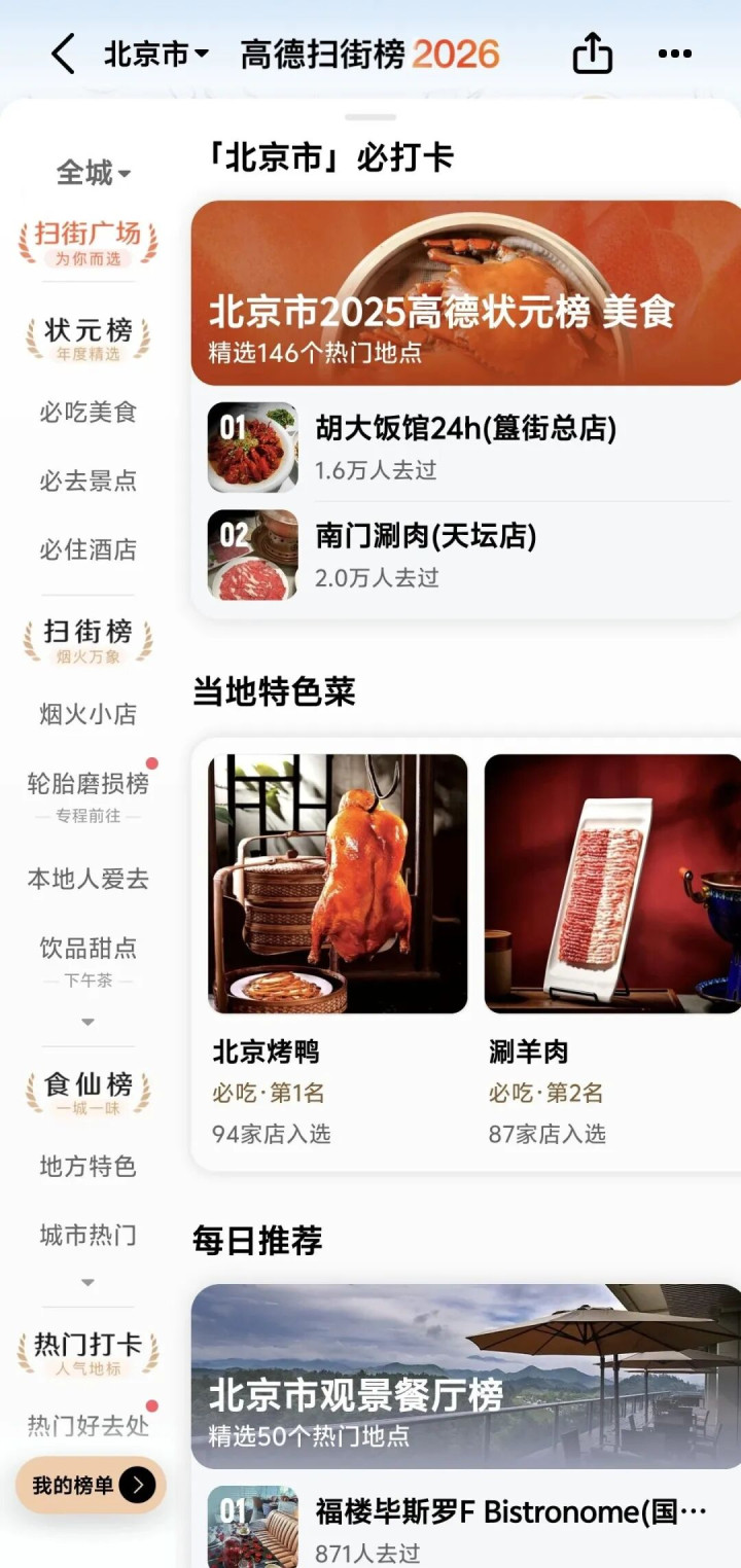 进入2026年,阿里进一步加码本地生活服务。据李响了解,高德地图近期发布了“高德扫街榜2026”,该功能允许商家仅凭上传的照片或视频,即可快速生成高度拟真的3D场景建模,相当于以极低成本实现“实景探店”效果。