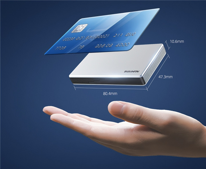 致态灵·先锋版机身设计精致小巧,尺寸仅为80.4x47.3×10.6毫米,重量约60克,全铝合金材质,时尚且手感极佳。