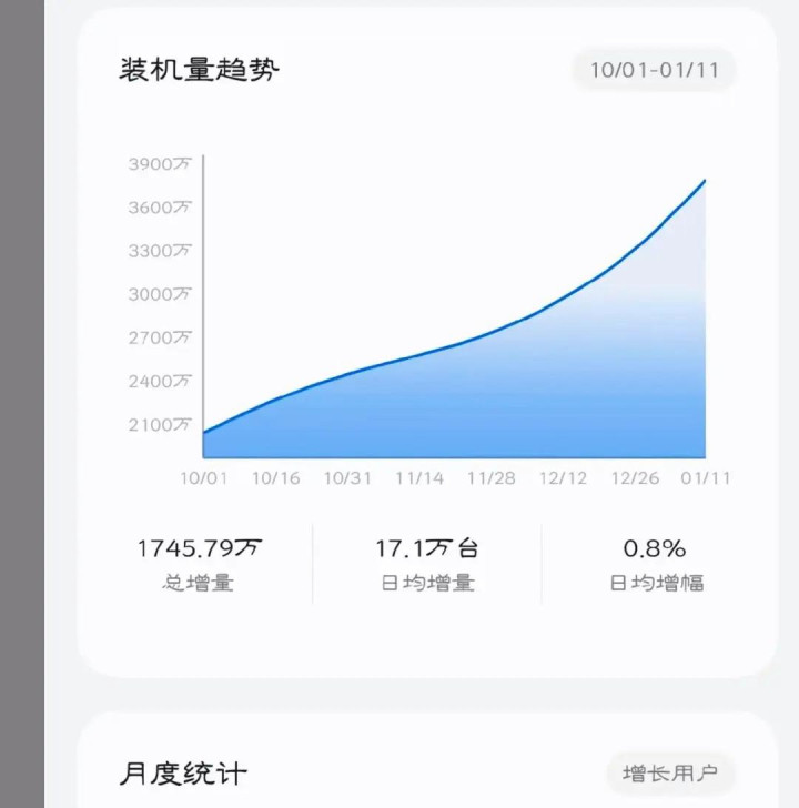 企业端与政务端部署也在扩张,在一定程度上推高了活跃装机数量。