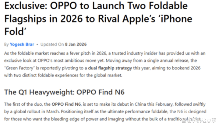 2026年将成为折叠屏市场的关键分水岭,尤其是OPPO手机,近期更是传出OPPO将打破“一年一更”的常规,首次开启“双旗舰并行”模式。